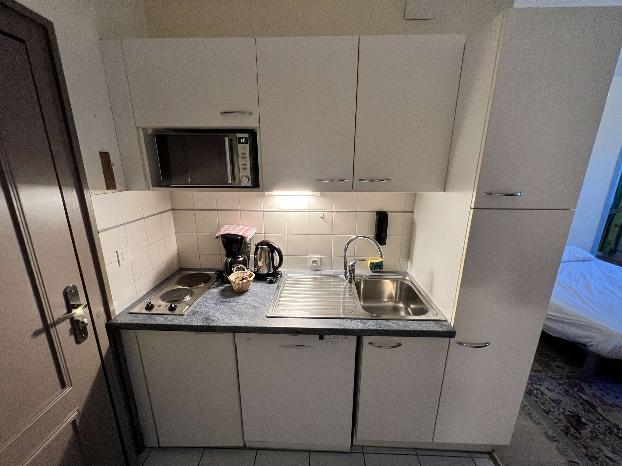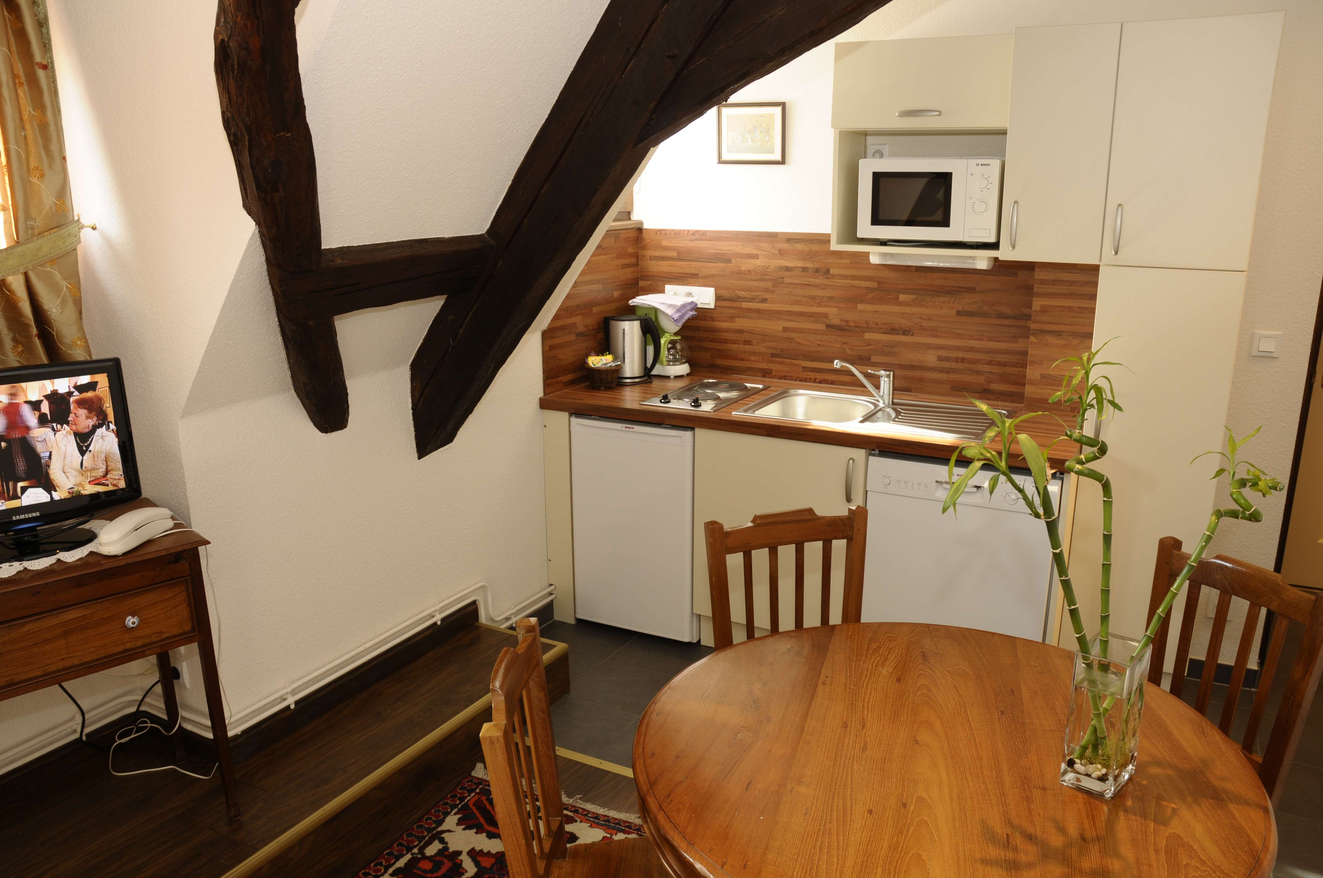 Appartement « Charme », comprenant une chambre avec lit double queen ou king size, un canapé-lit pour deux autres personnes dans le salon, cuisine équipée, TV, salle de bain avec baignoire ou douche et WC.