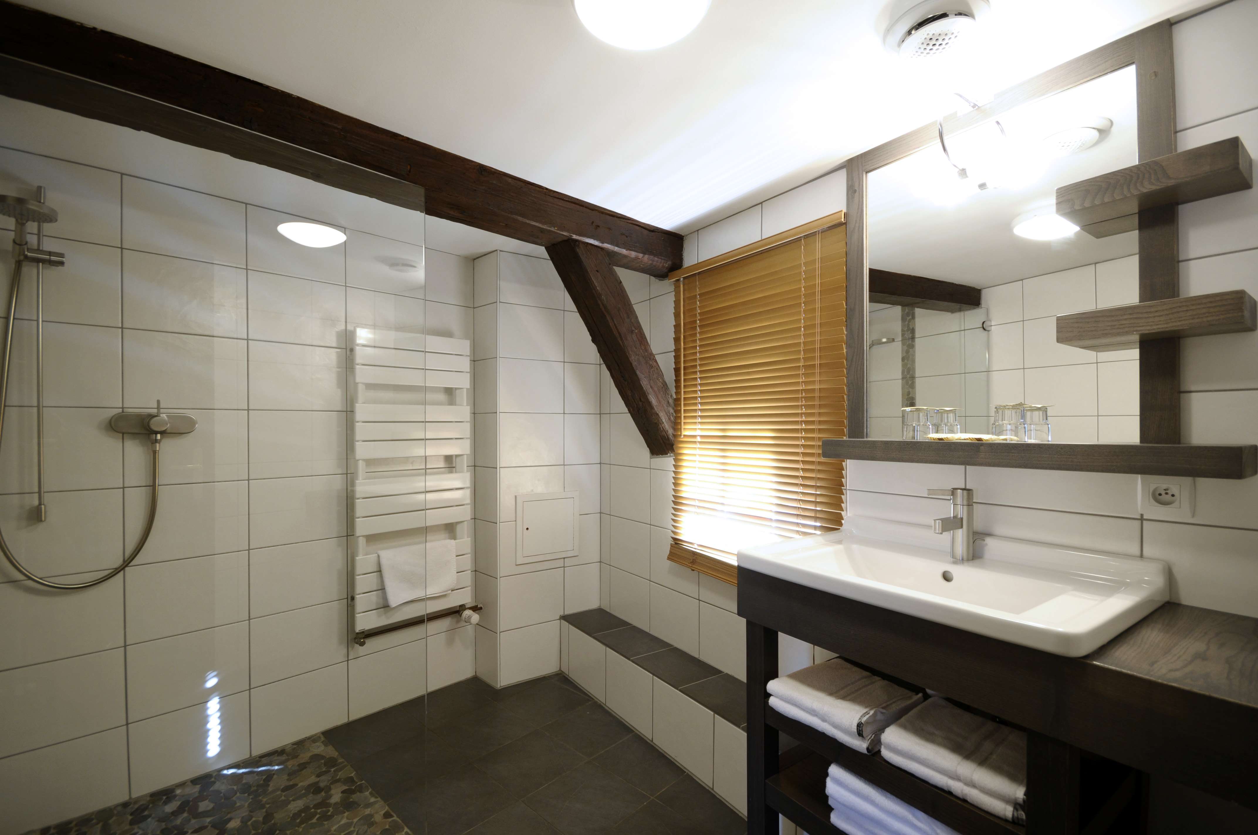 Suite « Les Terrasses », comprenant deux chambres doubles avec lits queen size, un salon avec cuisine équipée, TV, deux salles de bain (une avec baignoire et une avec douche à l’italienne) et WC, terrasses privées.